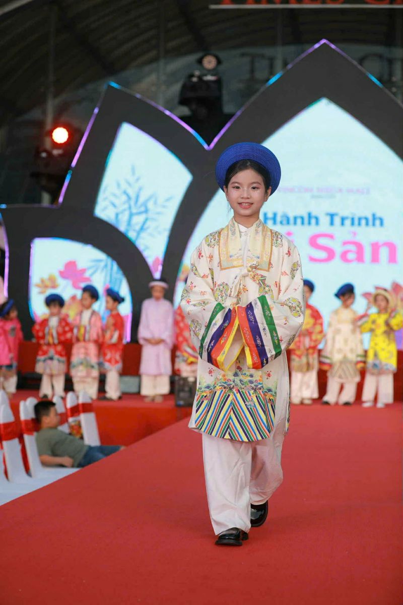 Trong không khí nghệ thuật sôi động tại Hoàng thành Thăng Long, Trà Mi xuất hiện với phong thái tự tin, nụ cười rạng rỡ và tinh thần nghệ thuật tràn đầy năng lượng. Không gian di sản lâu đời trở thành phông nền tôn vinh trọn vẹn tài năng và sự sáng tạo của cô bé.