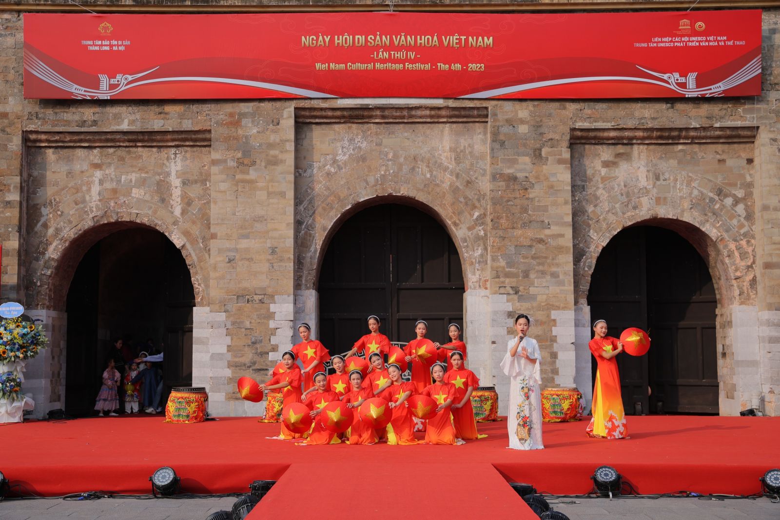 ( Vanhoanghethuatvietnam)Nằm trong chỗi sự kiện kỷ niệm “ Ngày Hội Di Sản Văn Hóa Việt Nam” lần thứ IV năm 2023 tại Hoàng Thành Thăng Long Hà Nội. Chương trình nghệ thuật thiếu nhi “ Dòng chảy Di sản”lần thứ nhất được dàn dựng các tiết mục vô cùng đặc sắc do chính các em thiếu nhi Hà Nội biểu diễn, bên cạnh đó áo dài Việt Phục Nguồn Việt được trình diễn như một điểm nhấn của sự kiện.