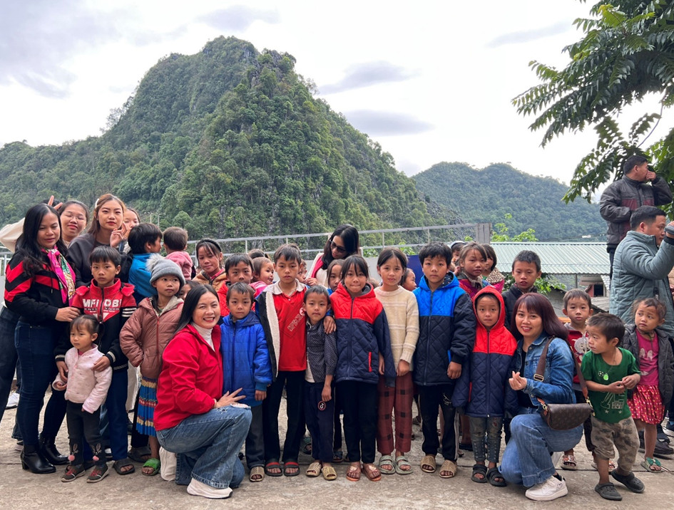 cùng đoàn thiện nguyện chụp ảnh kỷ niệm với các em nhỏ xã Giàng Chu Pìn, huyện Mèo Vạc, tỉnh Hà Giang.