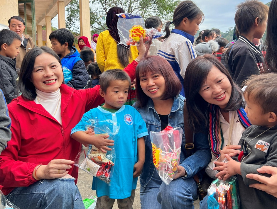 Ngoài việc tích cực mạnh dạn, sáng tạo đi đầu trong công tác giảng dạy, quản lý, cô Minh Nguyệt còn cùng nhóm bạn của cô tham gia các hoạt động nhân đạo từ năm 2021. Khi thì cô đi tặng quà cho các hộ nghèo tại Mường Ảng, Điện Biên, có lúc thì lại lên các huyện khó khăn vùng cao được gieo duyên với các em nhỏ. Mỗi chuyến đi thiện nguyện là một cảm xúc khác nhau, là niềm động lực cho lần sau cô trở lại để giúp đỡ thêm nhiều bà con, các em nhỏ khác.