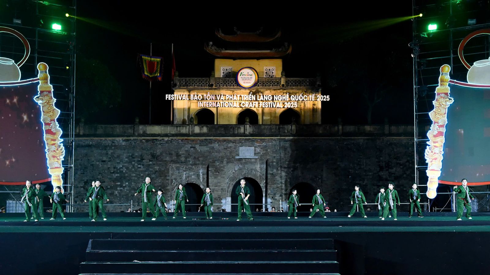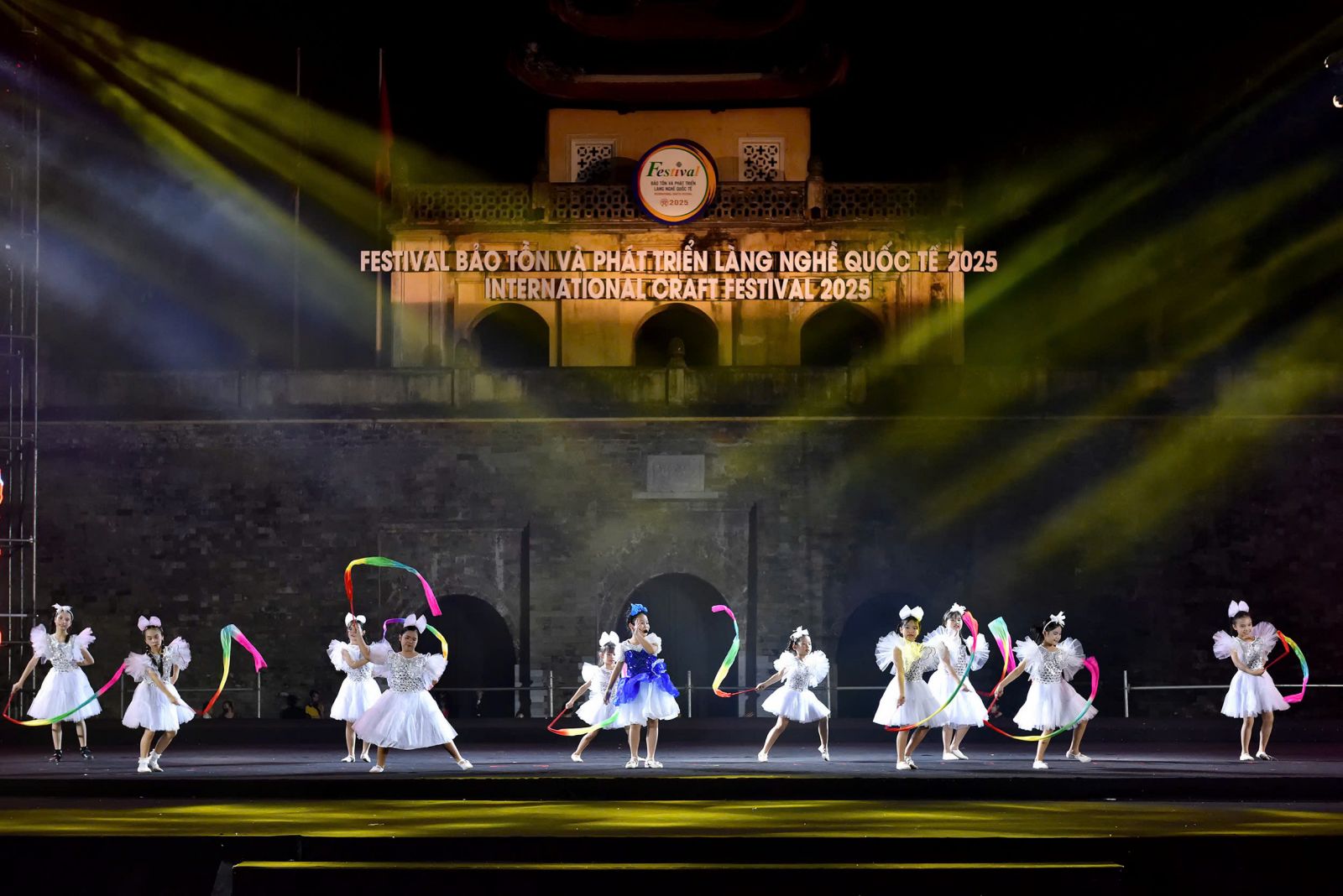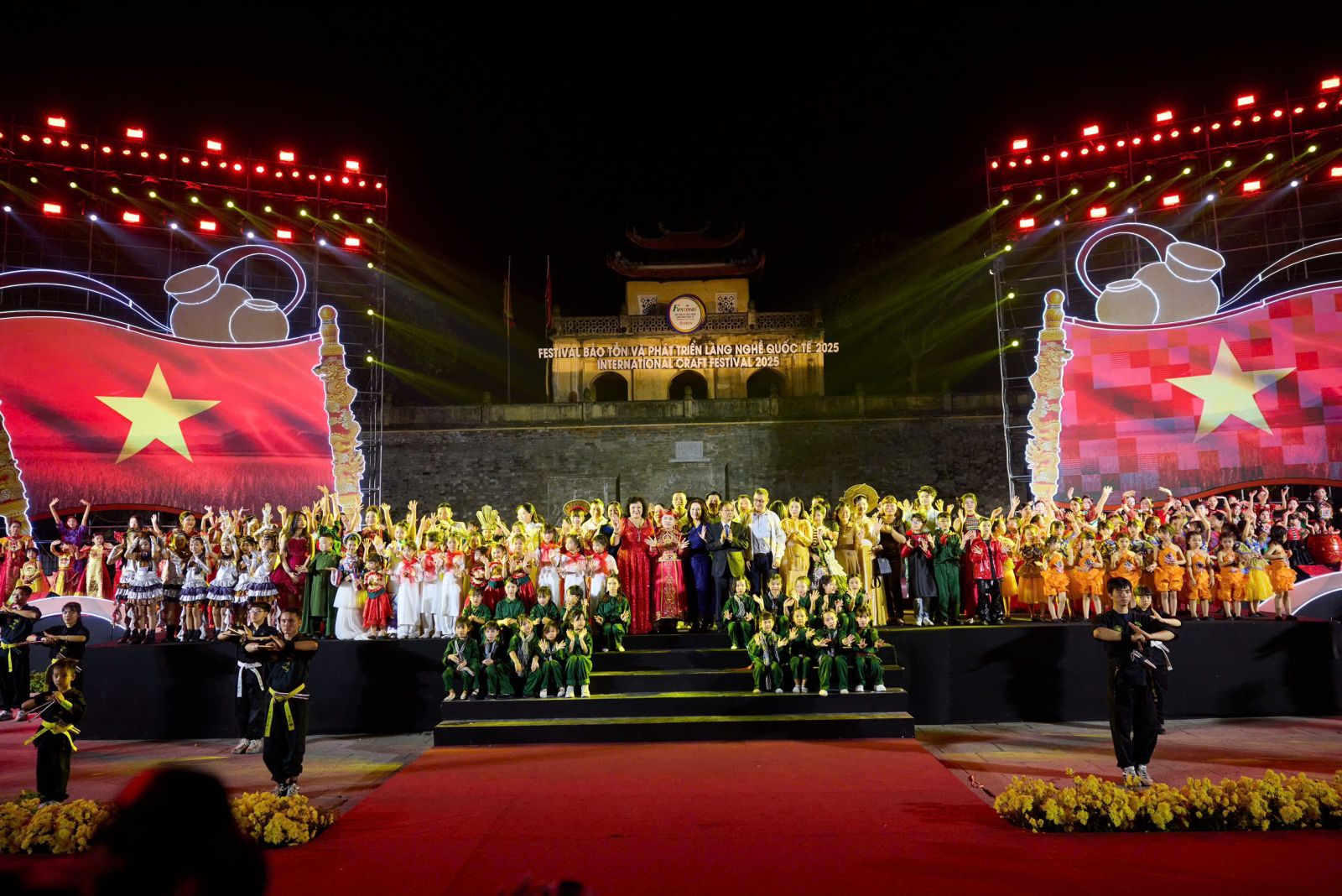 ( vanhoanghethuatvietnam)Vừa qua, tại Hoàng thành Thăng Long tối 16/11, gần 500 nghệ sĩ nhí và mẫu nhí đã cùng nhau tái hiện bức tranh sinh động về văn hóa Việt trong chương trình nghệ thuật “Sắc Màu Di Sản – Kết Nối Tinh Hoa Toàn Cầu”. Sự kiện mang đến không gian nghệ thuật giàu tính truyền thống, truyền cảm hứng mạnh mẽ về bản sắc dân tộc.